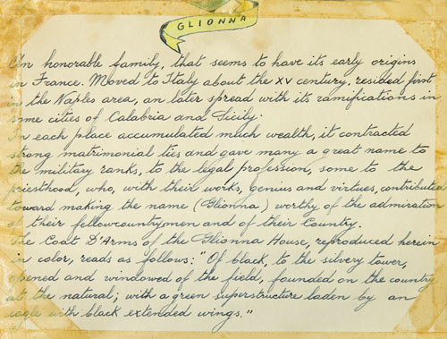 Glionna family Coat of Arms (A gift from D’Arcy Glionna, 2008)
