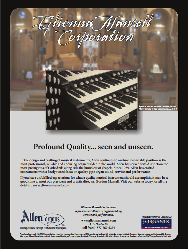 Toronto - Glionna Mansell Corporation launches Profound Quality… seen and unseen, a new ad campaign to highlight some of the product characteristics that have made Allen the most respected organ builder in the world.