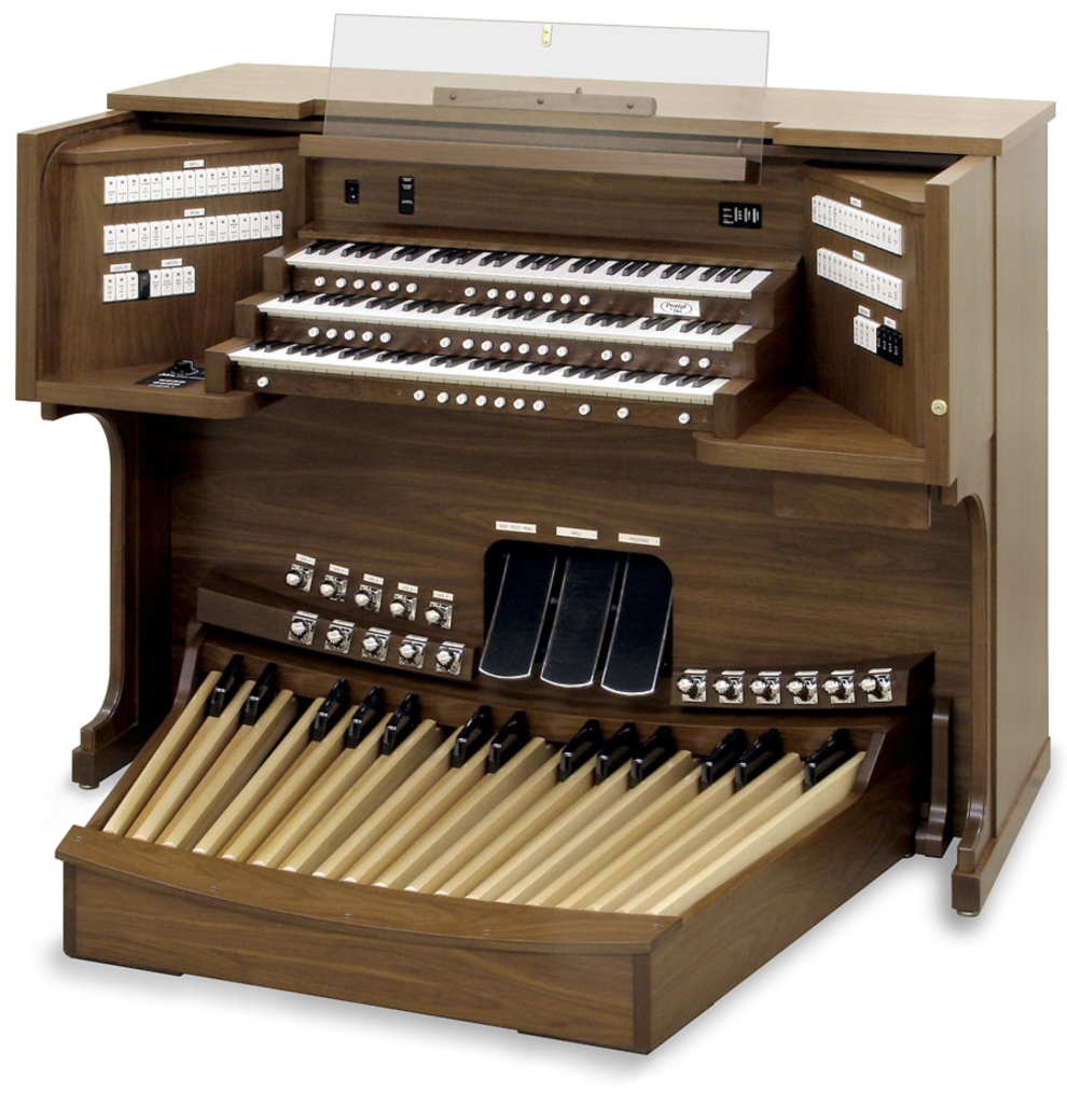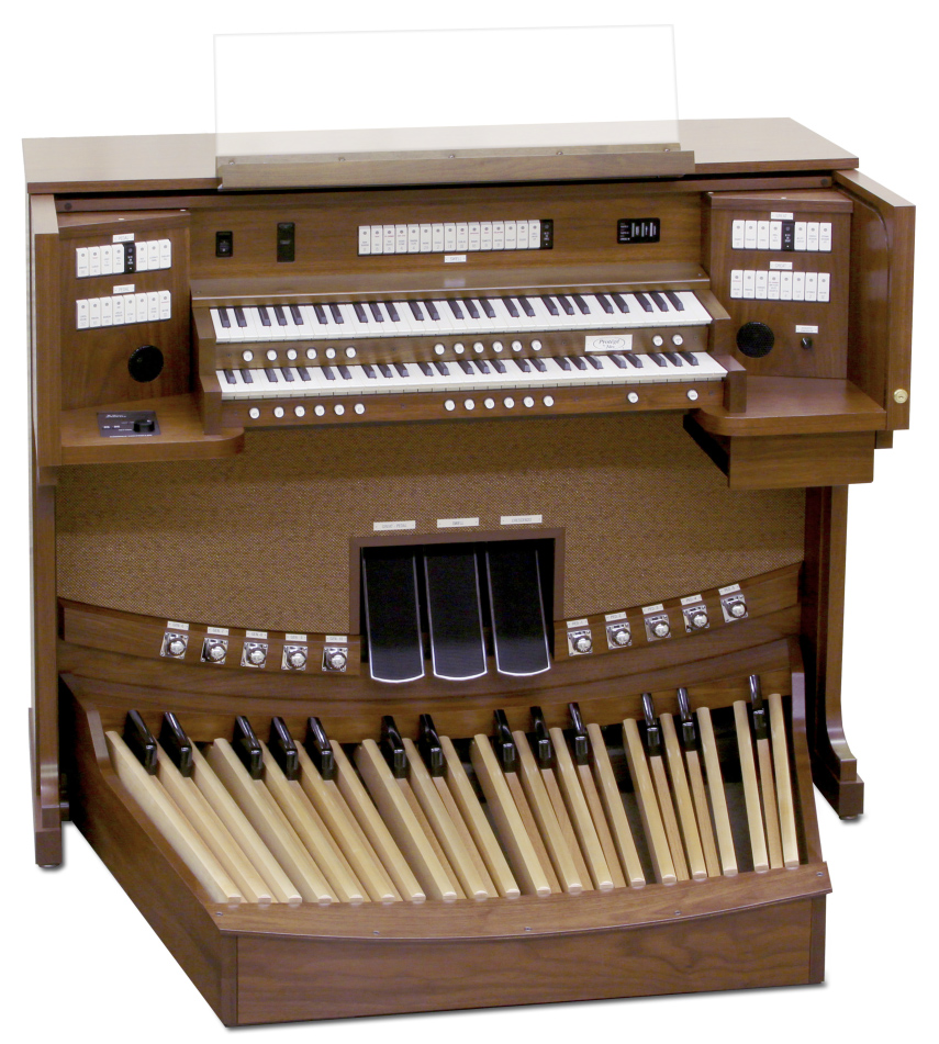 All Protégé and Quantum organs have individually adjustable weighted and felted wooden keysticks, sealed reed switch keying for the ultimate in reliability and responsiveness, note-by-note, stop-by-stop voicing. These significant features combine to achieve pipe organ characteristics in sound and touch. This means that well over 500 years of organ repertoire and organ building can be credibly represented and performed on Allen instrument today and far into the future. Hardwoods and hardwood veneers are used to enhance the quality and longevity of each Allen console.